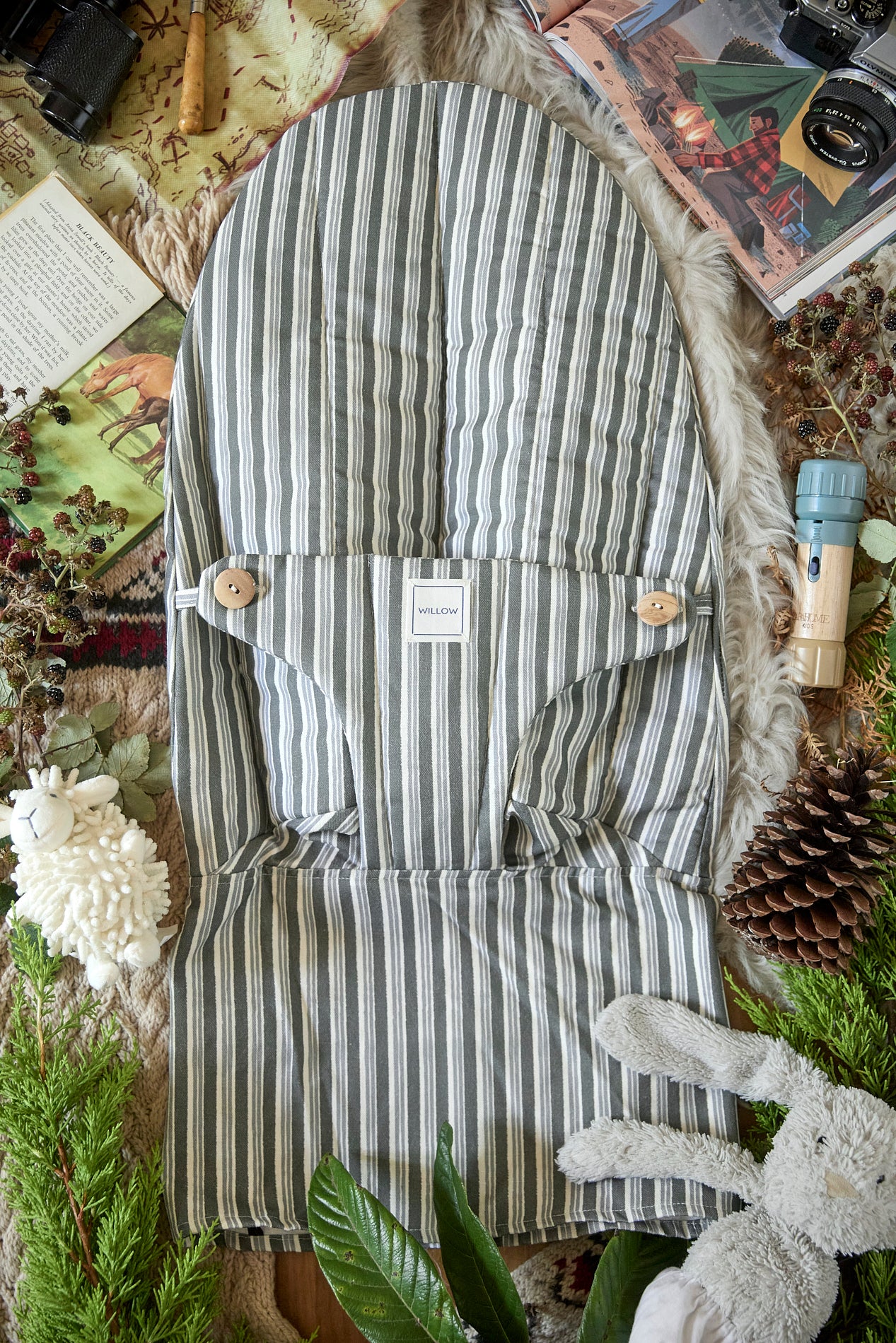 Funda para hamaca Babyjörn compatible con los modelos Balance, Soft y Bliss confeccionada con tejido 100% algodón, transpirable e hipoalergénico para cuidar la piel del bebé. La funda de hamaca está acolchada en el respaldo para dar una mayor comodidad al bebé y reforzada en los laterales para aguantar bien el peso. La funda sustituye a la original.